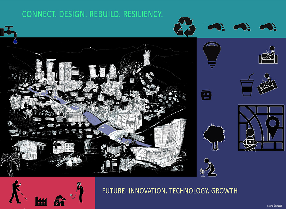 Projekat je smišljen u formi plakata sa skicama trenutnog Sarajeva i njegove arhitekture, kao centra BiH, te piktogramskim prikazom utjecaja. Projekat navodi na razmišljanje o trenutnom i budućem stanju grada u kojem živimo. Kako na Sarajevo utječu globalne promjene, šta je to što karakteriše trendove kod mladih, kako se mali svijet oko nas mijenja i šta su tendencije koje slijedimo... Projekat govori o žarištima dešavanja, tj. problemi koji nas prate i ponekad daju osjećaj nemoći, kao i globalni trendovi koji se velikom brzinom razvijaju i preuzimaju, te pozitivno ili eventualno negativno utječu na nas. Projekat preispituje razmišljanja o svemu onome što se oko nas dešava i načine kako da krenemo ka stvaranju ideja i inovacija, ali i pronalasku fleksibilnosti u brzom svijetu oko nas koji nikog ne čeka.